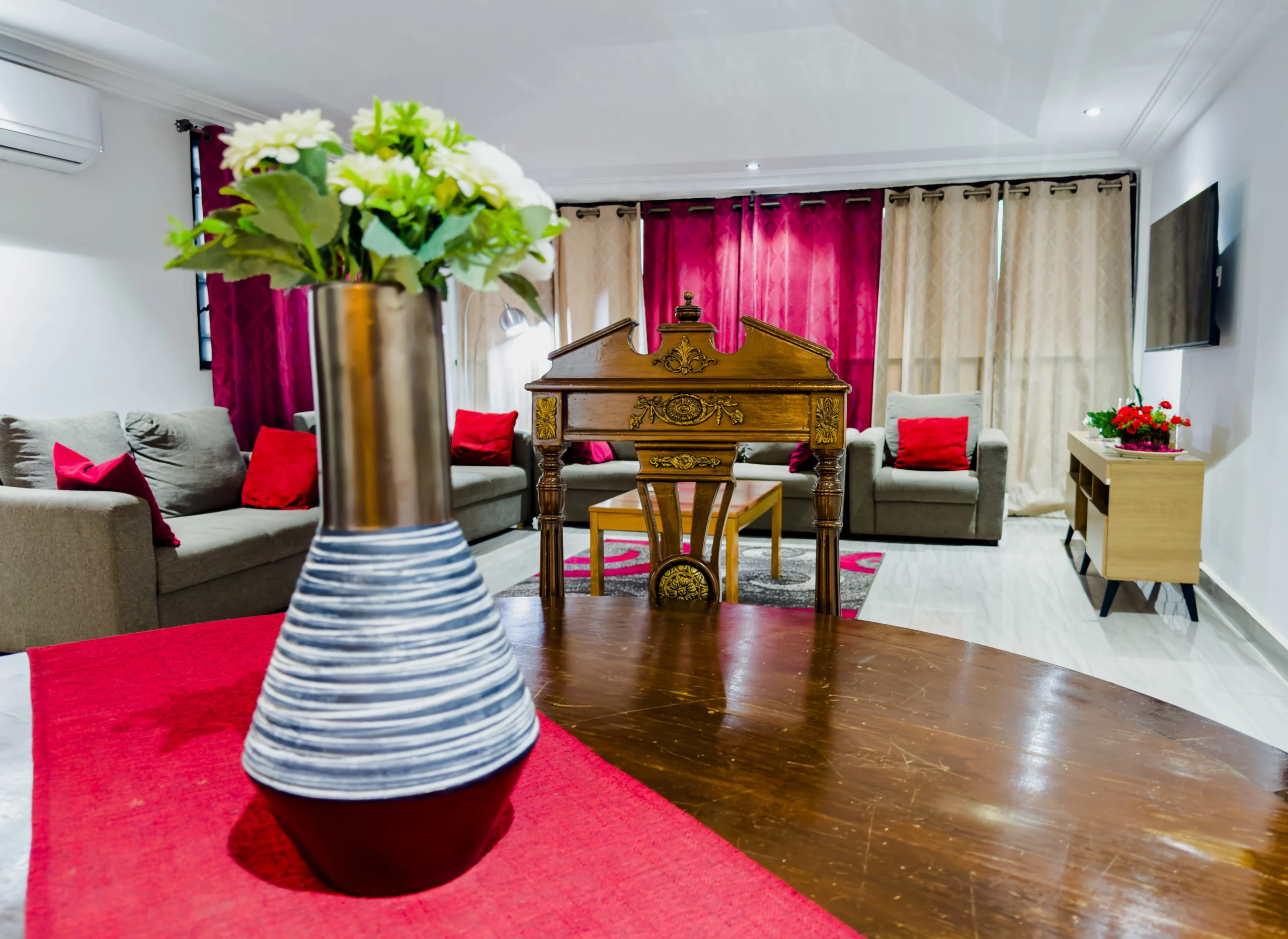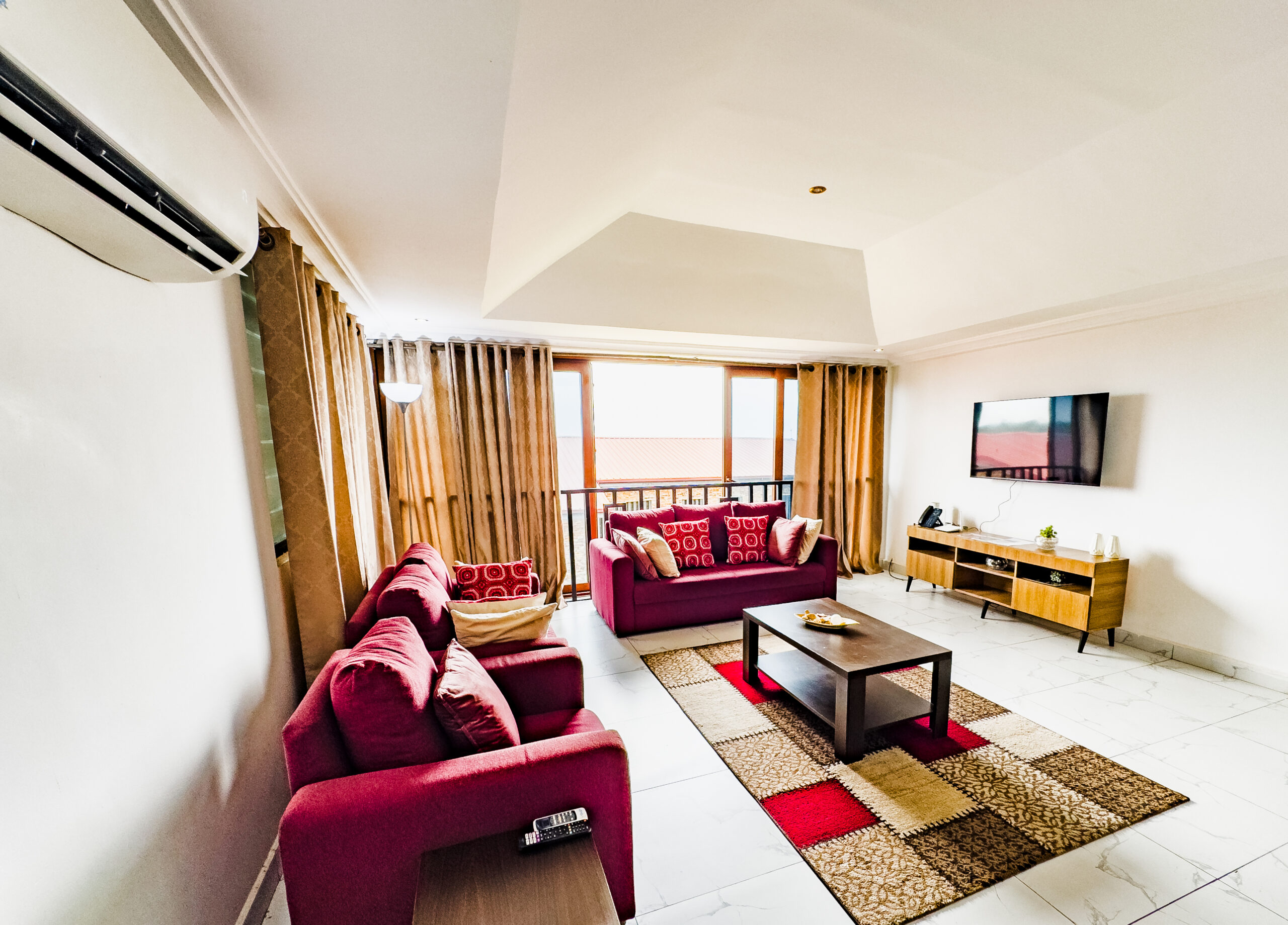 These apartments overlook the beautiful view of the Akwapim Mountains, allowing you to watch the sun rise and set through our double doors, which open to reveal a remarkable view. The apartments feature a kitchenette and a spacious lounge area with a dining space. Each room comes fitted with its bathroom.